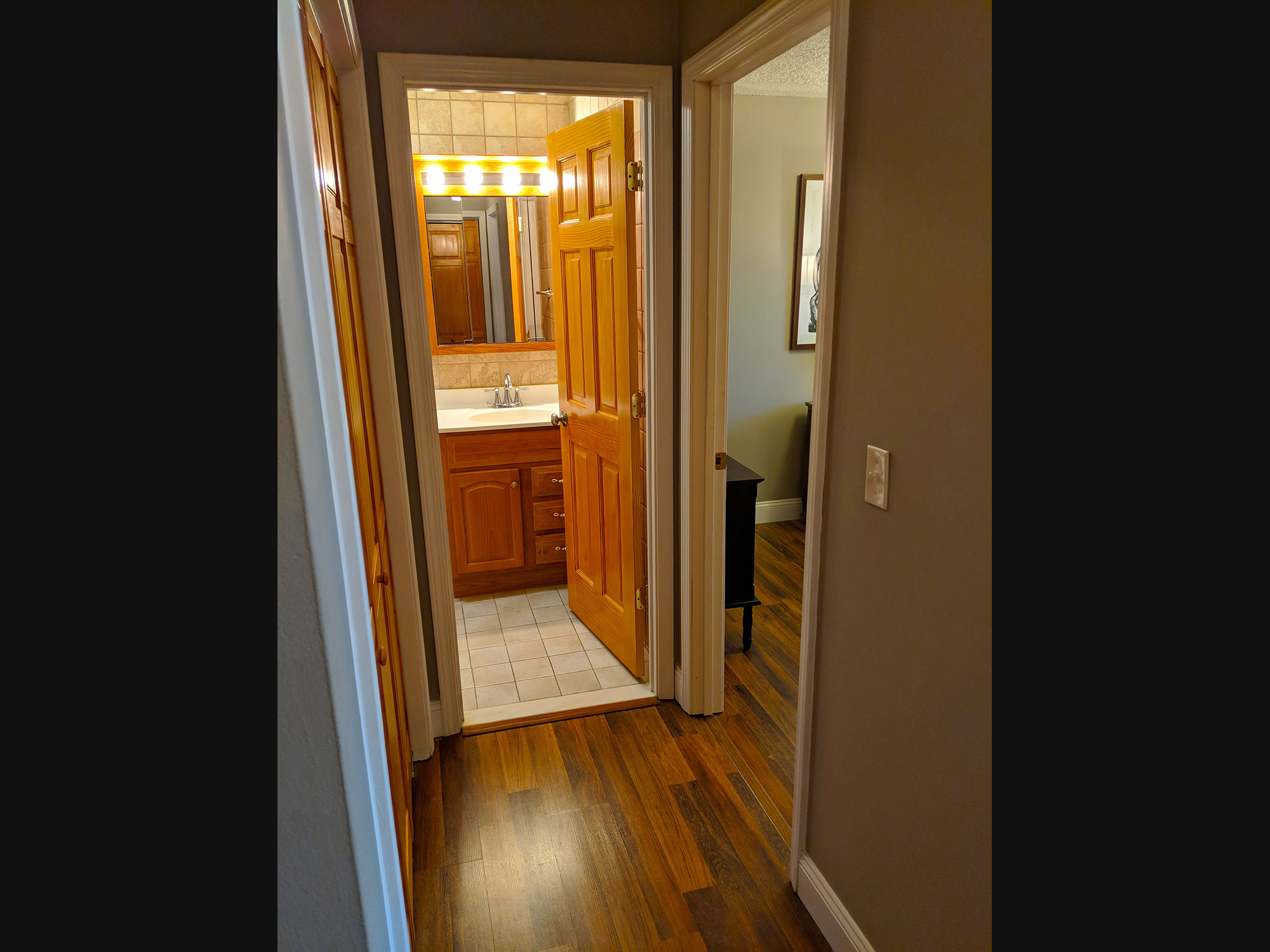 Extra Bathroom - This apartment features 2 bathrooms, and a pocket sliding door in the hallway that separates the 2 bedrooms & bathrooms.